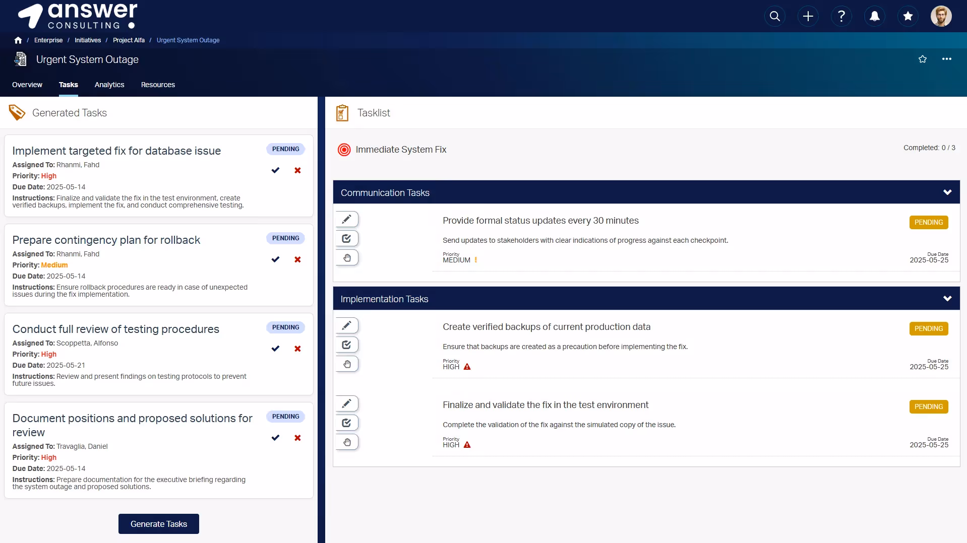 Users can review these suggestions, accept the relevant ones, and formalize them into a dedicated task list.