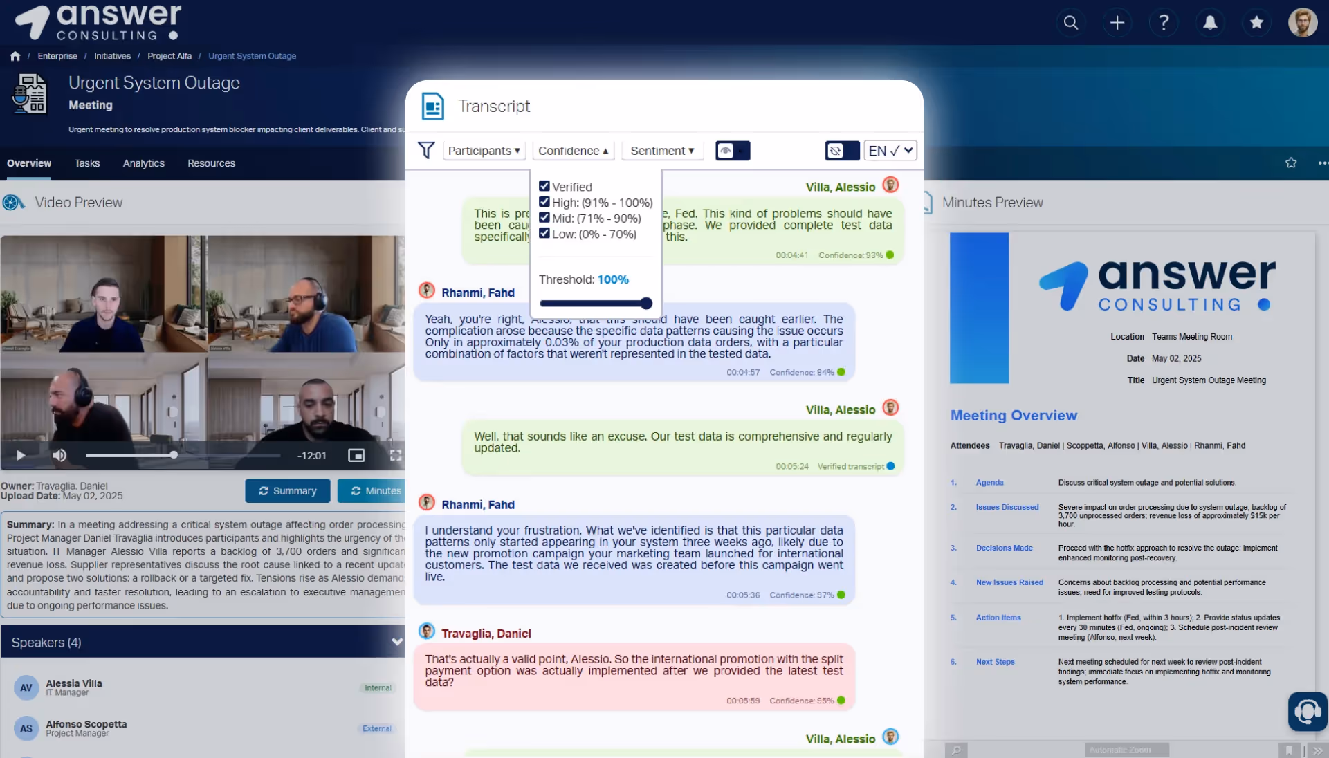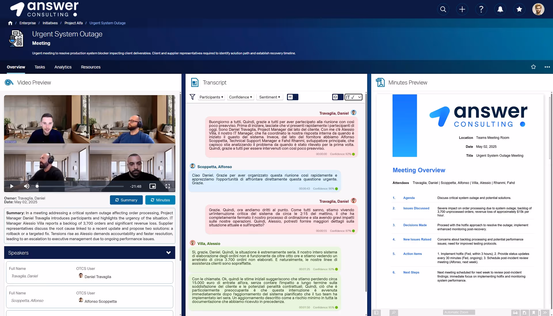 To help teams go beyond documentation and into decision-making, the solution includes a set of analytics, dynamically generated from the transcript content.